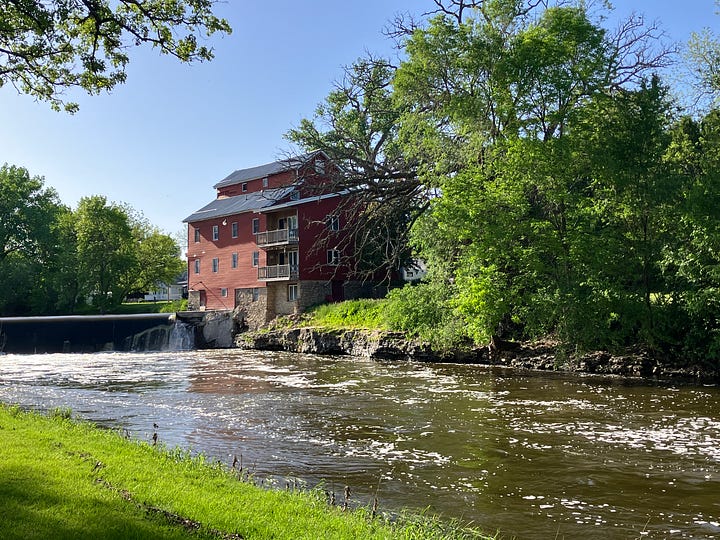 What makes Fertile pleasant (besides Cafe Mir) is the lovely William Rhodes Island Park, which stretches out behind a row of buildings on Main Street. Nestled on an island in the Winnebago river, the lush park offers rushing waters and a view of a former mill-turned-residence. Go early to take a little walk around.