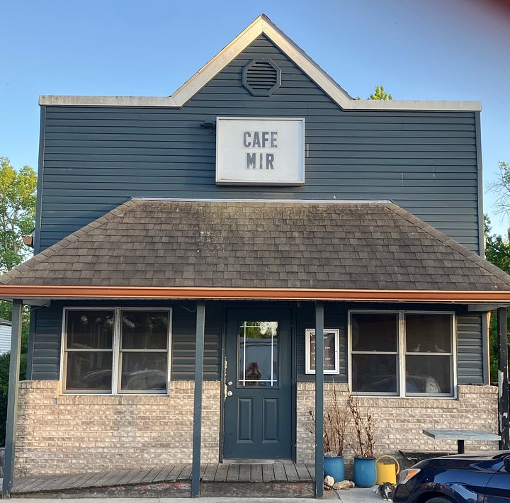 Café Mir is owned by cousins Nathaniel Frederick and Josh Frederick. Both are from the area, but have lived extensively elsewhere (Josh, the chef, worked as a sommelier in L.A., while Nathaniel has lived all over—Prague, Sicily, Paris, Serbia). The cousins opened the restaurant in 2017, in Fertile, Iowa, population 299; mir is Czech for “peace.”