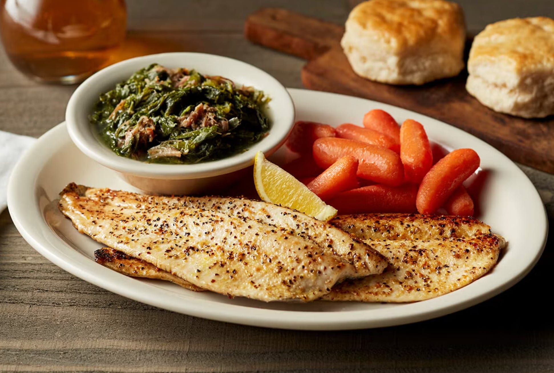 Surprised? I was too. Then, I discovered one very good dish and a terrific side, and now I know that if I’m ever stuck for something to eat, and a Cracker Barrel is nearby, I’ll be just fine.
