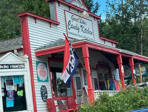 Stopping in at the Great! Lakes Candy Kitchen up the road apiece after lunch at New Scenic Café is a great idea. Because woe betide the traveler who goes in hungry. Third-generation candymakers follow the same recipes created by their grandfather, founder Gust Canelake, in 1905. They’re all good (pro tip for the sugar-mindful: the sugar-free dark peanut clusters are great).