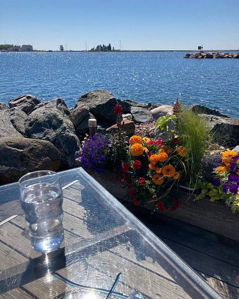 It fulfills all of my summer vacation requirements. A hot day there is in the upper 70s; it is water, water everywhere; it has natural beauty to spare; and there’s easy access to first-rate, pie-hole-filling food. (Including pie! More on that later.)